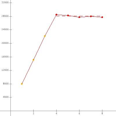 | SPECjbb2000 | (from 4 to 8) | 28032 ops/s |