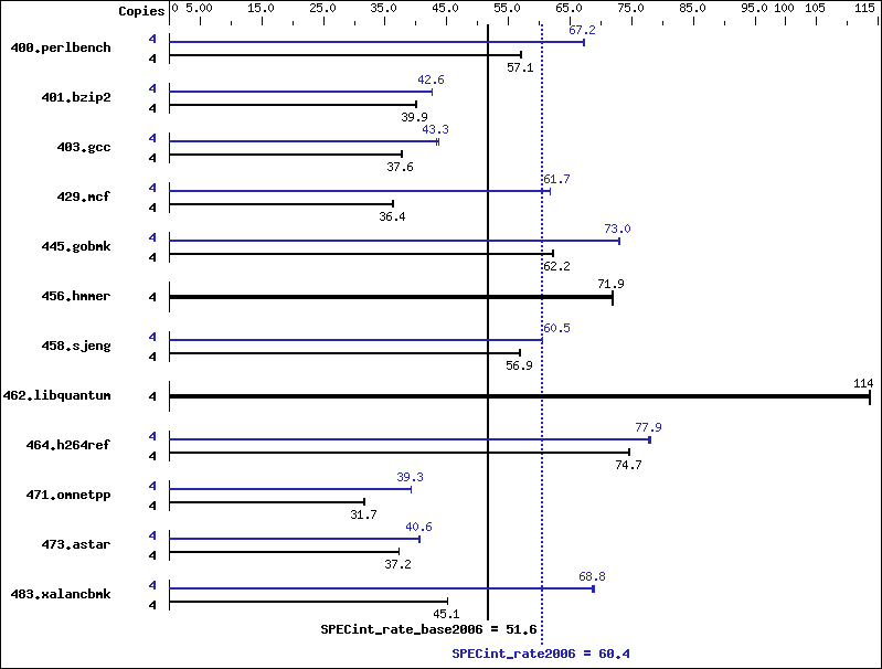 | 464.h264ref | 4 | 1189 | 74.5 | 1184 | 74.7 | 1185 | 74.7 | 4 | 1138 | 77.8 | 1134 | 78.1 | 1137 | 77.9 |