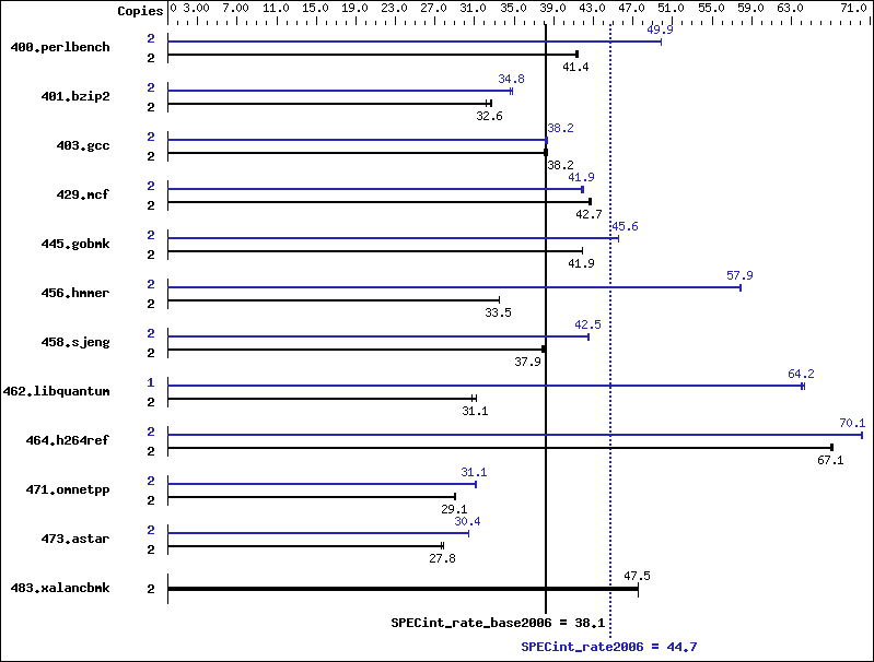 | 458.sjeng | 2 | 641 | 37.8 | 637 | 38.0 | 638 | 37.9 | 2 | 570 | 42.4 | 569 | 42.5 | 569 | 42.5 |
