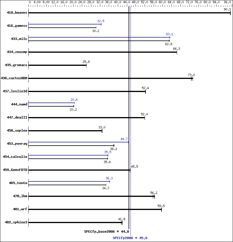 | 433.milc: | -xSSE4.2(pass 2) -prof-gen(pass 1) -ipo(pass 2) -O3(pass 2) -no-prec-div(pass 2) -prof-use(pass 2) -static -auto-ilp32 -ansi-alias |