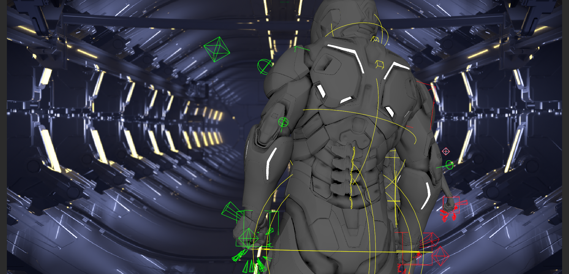 X-ray shaded metroverse scene with random color per object
