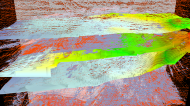 Similar to medical imaging such as MRI or CT, geophysical surveys generate image slices through the subsurface that are built into a 3D grid. Volume rendering provides a 2D projection of this 3D volumetric grid for further analysis and interpretation. In addition to the volume rendering, the test includes both inline and crossline planes (slices in the X and Y planes). Some subtests contain horizons, which are geological strata boundaries of interest, generated by exploration geophysicists, and are rendered using textured triangle strips.