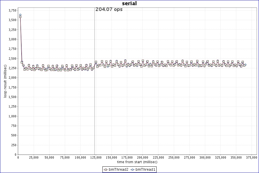 | serial | number of threads: 2 minIter: 1 maxIter: 1 warmup time: 120000 run time: 240s |